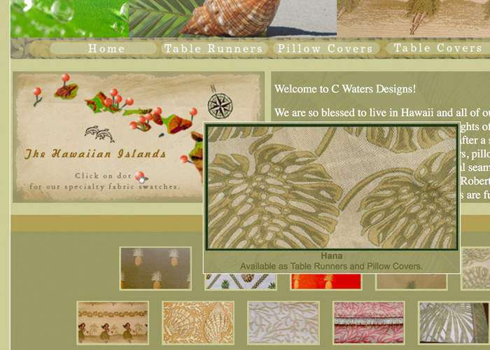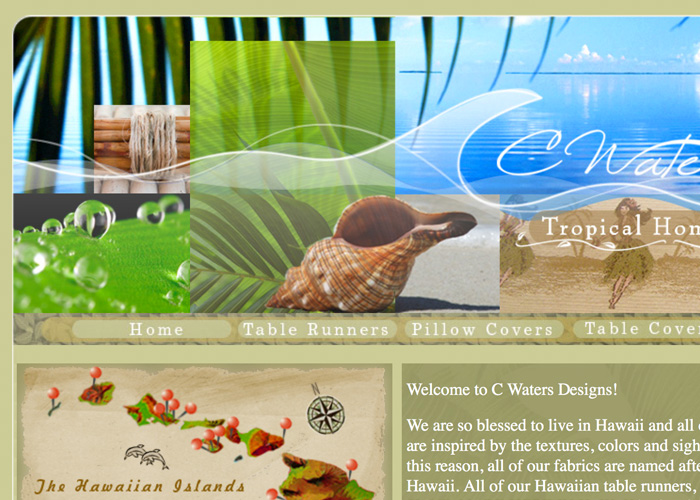 Inspired by the tropical elements portrayed in their products, this website evokes the spirit of the oceanic environment. Rich color and Polynesian imagery are expressed in this fabric design company.