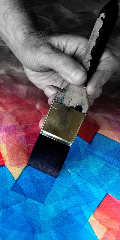 “Going home,” how he talks about his time on Maui, where he met master artist and teacher, Dick Nelson, creator of the Tri-hue watercolor school—using multiple glazes of red, yellow and blue, which remains his medium of choice.