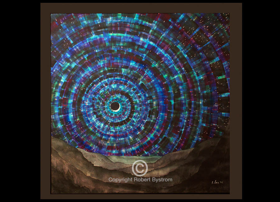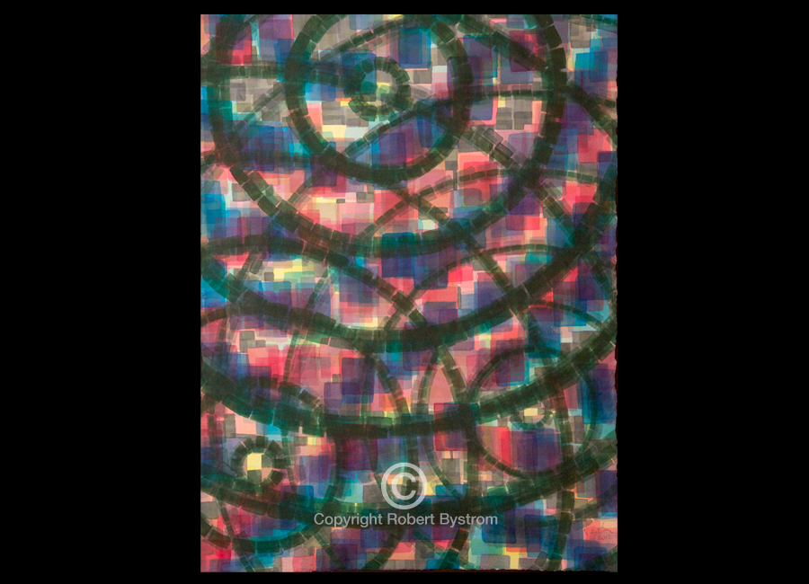Beginning with lost-wax bronze casting and carving in stone and wood in India, he gained recognition with his innovative acrylic kinetic sculptures, with shows in Philadelphia by the late ‘60’s. His initial work on paper was sumi-e brush and ink, which led to experimenting with flashy colored inks and water, one piece of which landed on the cover of The Encyclopedia of Living Artists in America, 1987, while he was living in the San Francisco Bay Area.