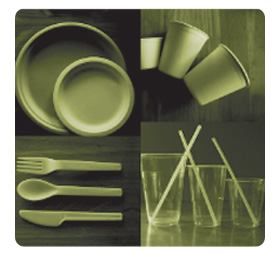 The above numbers do not include trash bags, grocery bags and other plastic materials like trays, utensils, clam shells, caps and other plastic packaging. Why Biodegradables? Plastic and foam disposables are made from petroleum based chemicals & additives. Petroleum is not only becoming an increasingly scarce resource, but it causes pollution and toxicity every step of its use - extraction, transportation, oil spills, refining and eventual production of the end use product. In addition, products made of foam and plastic do not degrade and persist in the environment for hundred of years, causing further pollution and toxicity. When exposed to heat, chemicals can leach into the food that it holds. Paper disposables are made from "virgin" wood fiber, which comes from our steadily depleting forests. Forests provide invaluable ecosystem services in maintaining biodiversity, streams, regulating climate and rainfall etc. It is quite amazing that even today, forests are cut down to be made into disposable paper products with a lifetime use of few minutes or seconds. Biodegradable and compostable food service and packaging disposables provide a sustainable alternative to the foam, plastic and paper products. 1) made from readily renewable sources like sugarcane fiber, corn and potato, 2) take less energy to manufacture, 3) not made from toxic or pollution causing sources 4) can be composted to reduce the amount of waste generated, helping to reduce waste collection bills. Do not leach toxic chemicals into the foods they hold Sugarcane fiber (bagasse) and Bioplastics Plastics made from corn, potato or other annually renewable sources and Bagasse made from sugarcane fiber, are the two main sources of biodegradable food service and packaging disposables. Fiber waste remaining after extraction of the juice from the sugarcane is molded at high pressure & temperature into plates, bowls, cups, take out containers, trays etc., while starch from corn, potato, tapioca, soybeans etc. is used to make products which are traditionally made from plastic and foam such as disposable eating utensils, bags, cold cups, drinking straws, etc We like to point out that, though using biodegradables is a step towards better environmental sustainability, it is not a solution to our throw-away culture. We strongly advocate using non-disposable products as much as possible and hope that counties and cities will pass regulations to tax use of disposable products and as well as their disposal to limit their use and disposal. | |