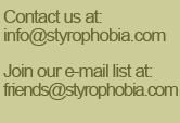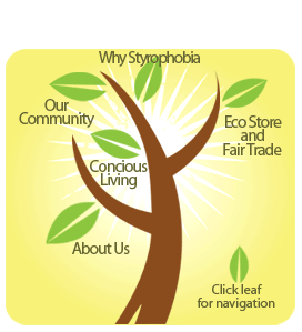 | Styrophobia is an organization working to reduce environmental degradation and economic injustice through education, community networks & sustainable products and enterprises. Why Styrophobia? To communicate and educate the public of the personal and environmental health concerns of expanded polystyrene foam (EPS) and other plastics. Did you know EPS is made from crude oil and can leach toxic chemicals into the food it contains? Where does it go after the trash can or landfill? It takes hundreds of years for one container made of EPS to break down. Learn what happens in the mean time. Eco Store & Fair Trade... Sustainable products, including biodegradables for everyday consumption choices. Non-petroleum based products which reduce the impact of our consumption on the environment. Raising awareness of compostable disposables made from readily renewable resources like sugarcane, corn & potato. Bringing to market a fair priced range of compostable & biodegradable food service and packaging products for use in companies, schools, cafeterias, and restaurants Our Community... To expand our understanding of the environmental and fair trade issues in our global community. To examine personal values and habits, their impact on the planet and to provide a supportive platform for personal change. Conscious Living... Highlighting the environmental and social impacts of our consumer choices on the planet together with recommendations for sustainable alternatives and their availability in our community. |