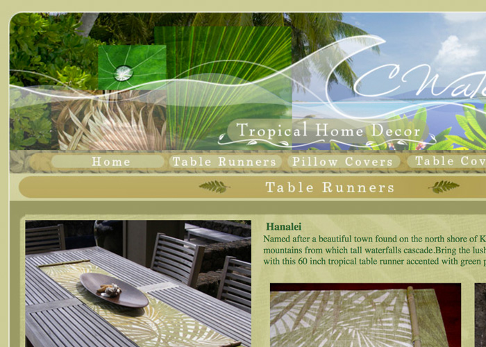 Inspired by the tropical elements portrayed in their products, this website evokes the spirit of the oceanic environment. Rich color and Polynesian imagery are expressed in this fabric design company.